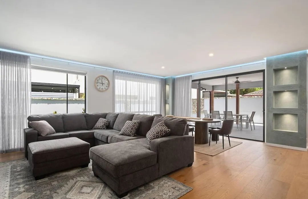 Cette villa Labrador Living - Spacious Haven Near Lagoon & Cafes dispose d'une cuisine complète comprenant un four et un lave-vaisselle pour préparer les repas. Vous pourrez dîner au Beach Cafe, situé à environ 15 minutes de marche. L'arrêt de bus le plus proche est l'arrêt de bus Marine Pde at Parker Street, juste à quelques pas de cette propriété.